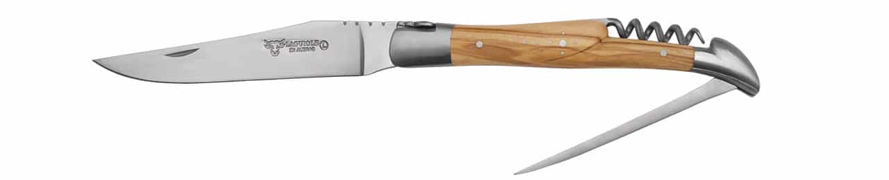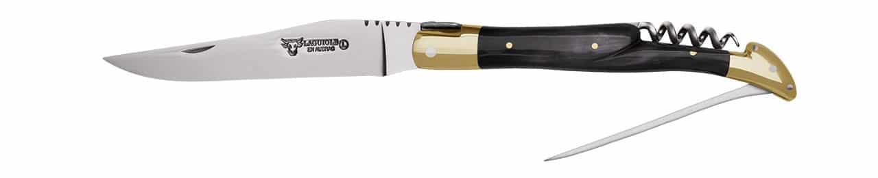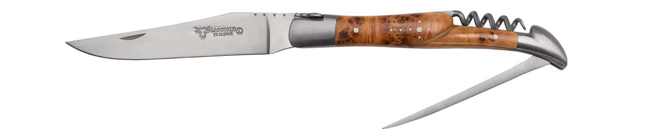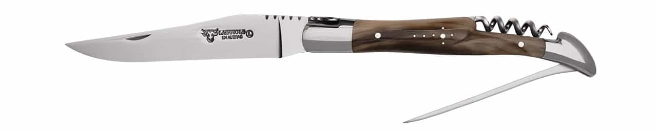 The three-pieces Laguiole knife consisting of a blade, a corkscrew, and an awl is historical. It bears witness to the origins of the Laguiole knife, made for the farmers of the Aubrac plateau. The awl was originally used to pierce the bellies of animals. Today, it is used as a versatile tool, handy for various perforation tasks.