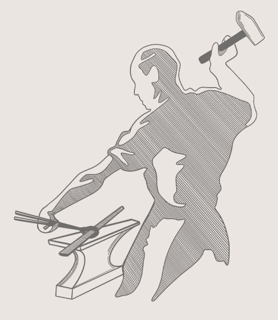 Au sein de notre forge, nous fabriquons notre propre acier damassé avec une déclinaison de quatre dessins particuliers. La première étape consiste à rassembler plusieurs plaques d’aciers pour constituer un seul bloc appelé ‘trousse’. Les aciers sont chauffés dans le foyer de la forge, puis martelés afin d’homogénéiser la soudure entre les couches.